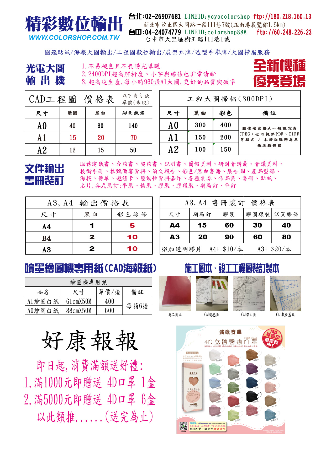 CAD工程大圖輸出價格表